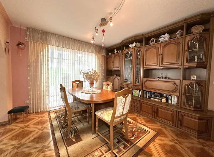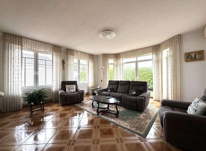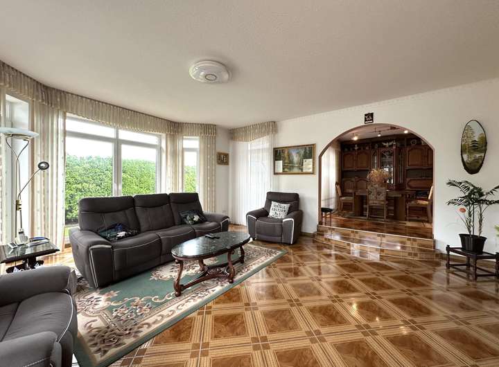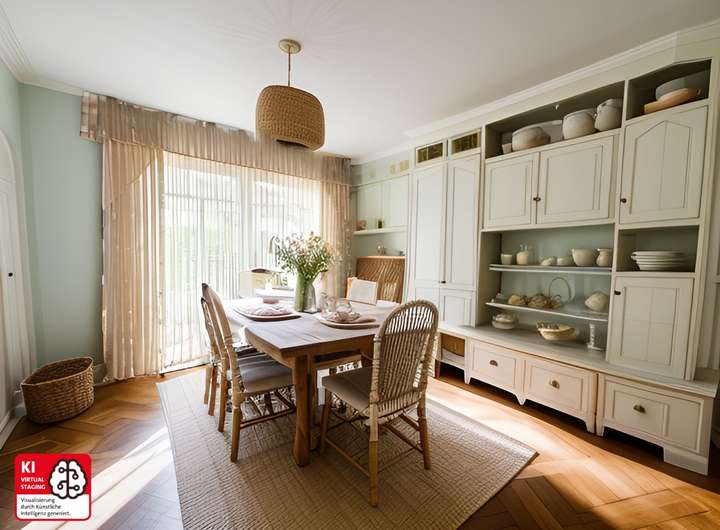 Der durchdachte Grundriss trennt Wohn- und Schlafbereich auf ideale Weise. Der großzügige Wohnbereich mit offenem Übergang zu Esszimmer und Küche schafft eine helle, einladende Atmosphäre und lädt zum Verweilen ein. Die Küche überzeugt durch Funktionalität und direkten Zugang zum angrenzenden Hauswirtschaftsraum – praktisch für den Alltag und kurze Wege.