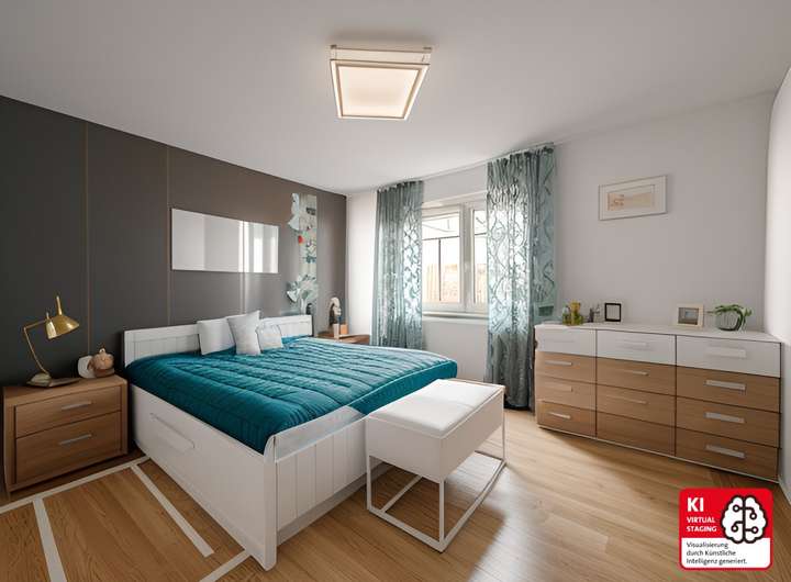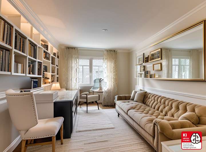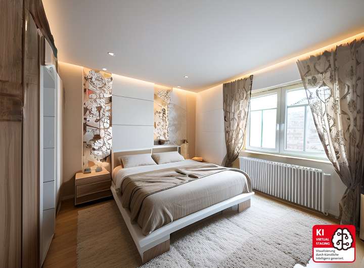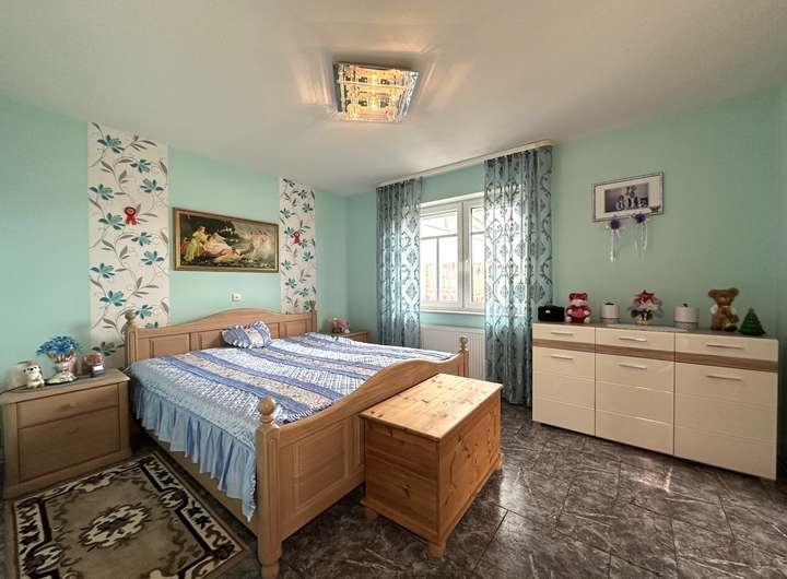 Die Schlafräume sind ruhig gelegen und bieten ausreichend Platz für individuelle Gestaltung. Das Bad ist hochwertig ausgestattet und fügt sich harmonisch in das stilvolle Gesamtbild des Hauses ein.