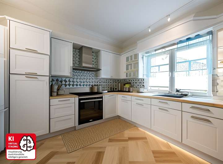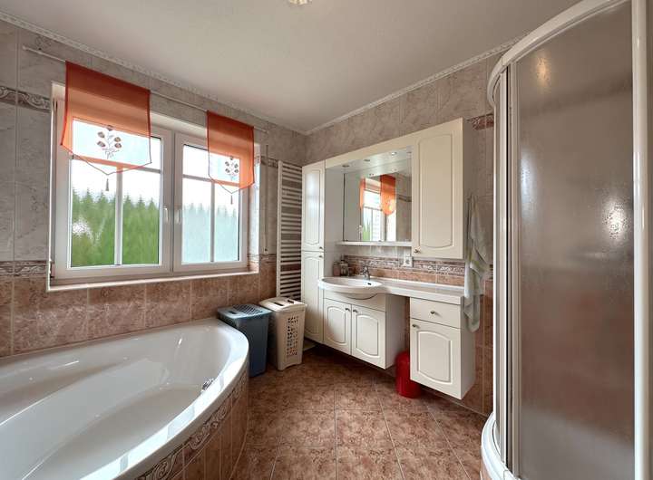 - Fußbodenheizung im Wohnzimmer, Küche, Gäste-Bad, Flur und Badezimmer