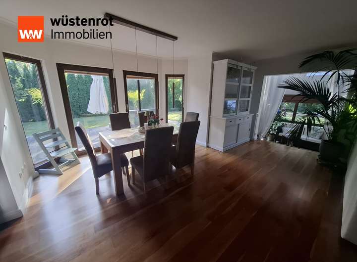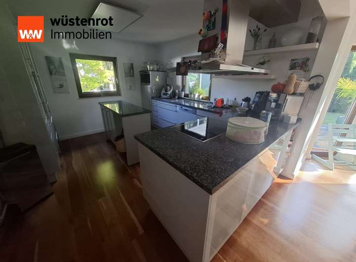 Auf einer großzügigen Wohnfläche von ca. 263 m², verteilt auf zwei Etagen, erwarten Sie zahlreiche geräumige Schlafzimmer und drei moderne Bäder, ergänzt durch ein Gäste-WC. Die hochwertige Einbauküche, ausgestattet mit neuwertigen Miele-Geräten, ist ideal für kulinarische Erlebnisse jeglicher Art.