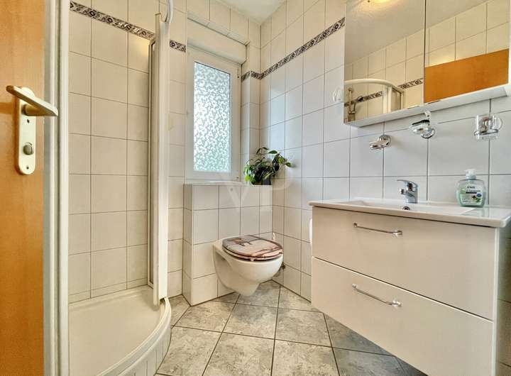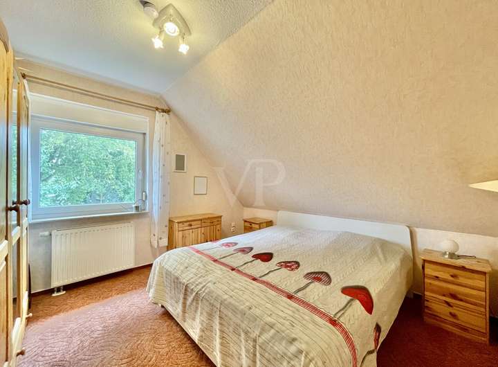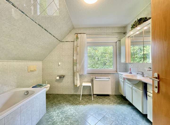 Im Obergeschoss befinden sich drei weitere Zimmer, die flexibel als Schlaf-, Kinder- oder Hobbyräume genutzt werden können. Ein großzügiges Bad mit Dusche und Badewanne sorgt hier für Komfort und Entspannung nach einem langen Tag.