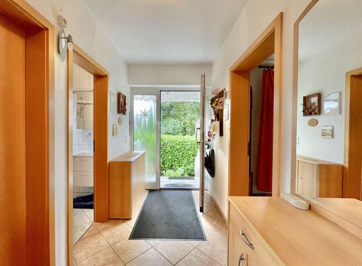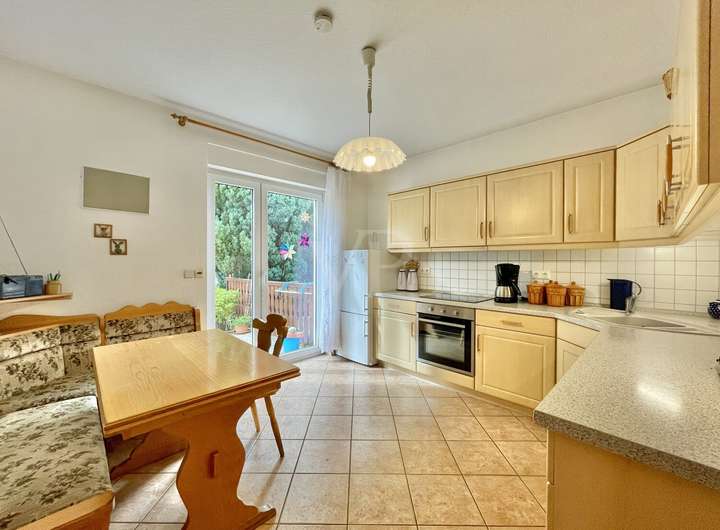 Im Erdgeschoss erwartet Sie ein gemütliches Zimmer, ideal als Arbeits- oder Gästezimmer, sowie ein großzügiges Wohnzimmer, das zum Entspannen und Verweilen einlädt. Die separate Küche, von der aus Sie direkten Zugang zur sonnigen Terrasse haben, bietet ausreichend Platz für kulinarische Aktivitäten, während ein praktischer Abstellraum für Ordnung sorgt. Ein geschmackvolles Badezimmer mit allen notwendigen Annehmlichkeiten rundet das Erdgeschoss ab.
