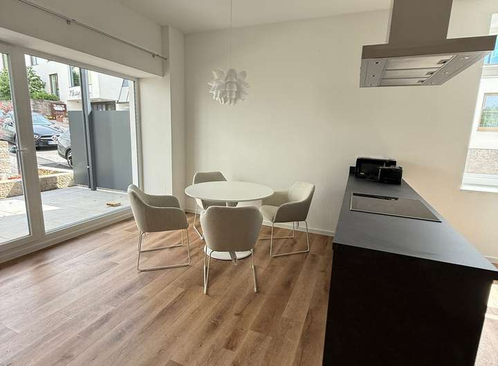 Voll möblierte, ausgestattete Wohnung mit moderner Küche und wunderschöner Einrichtung. Freisitz mit Stühlen und Tisch laden zum verweilen ein. TV und Waschmaschine, Staubsauger, Kaffemaschine vorhanden. Hausmeisterservice inklusive.