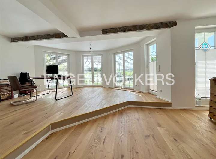 umfassend saniert, erweitert und neu gestaltet. Dabei wurden unter anderem Türme, Bäder und eine Terrasse neu angelegt. Dieses großzügige Anwesen bietet eine Wohnfläche von ca. 330 m², verteilt auf drei Etagen. Es verfügt über eine separate Einliegerwohnung, sowie Büroräume im Untergeschoss. Die Immobilie bietet viel Platz für Familien mit Kindern und individuelle Nutzungsmöglichkeiten, wie beispielsweise das Kombinieren von Wohnen und Arbeiten unter einem Dach.