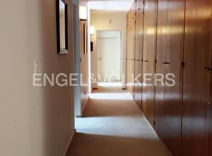 Im linken Flügel des Architektenbungalows fügen sich ein großzügiges Schlafzimmer, 3 weitere Zimmer und 2 Bäder harmonisch in das Gesamtbild ein. Der Flur des Traktes ist mit großzügigen Einbauschränken ausgestattet.