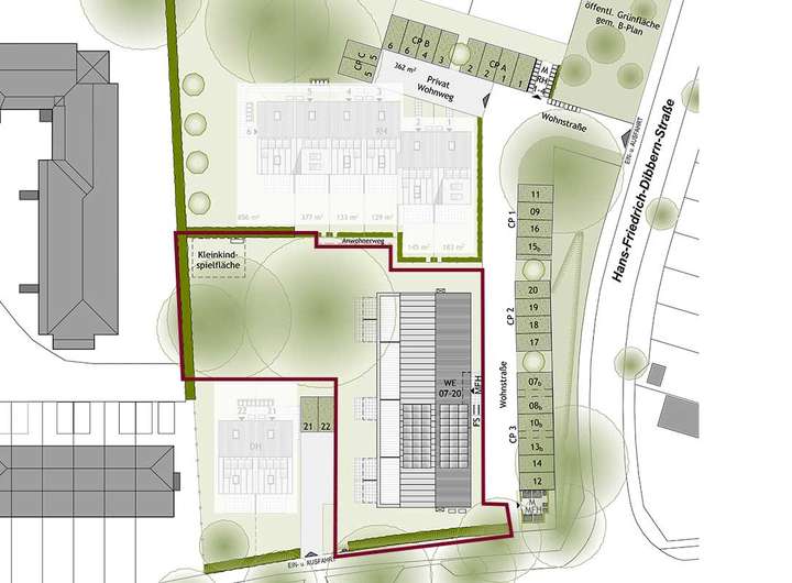 ▶ 1 Stellplatz und Kelleraum pro Wohnung