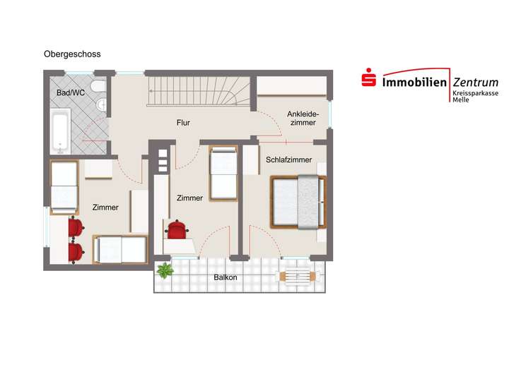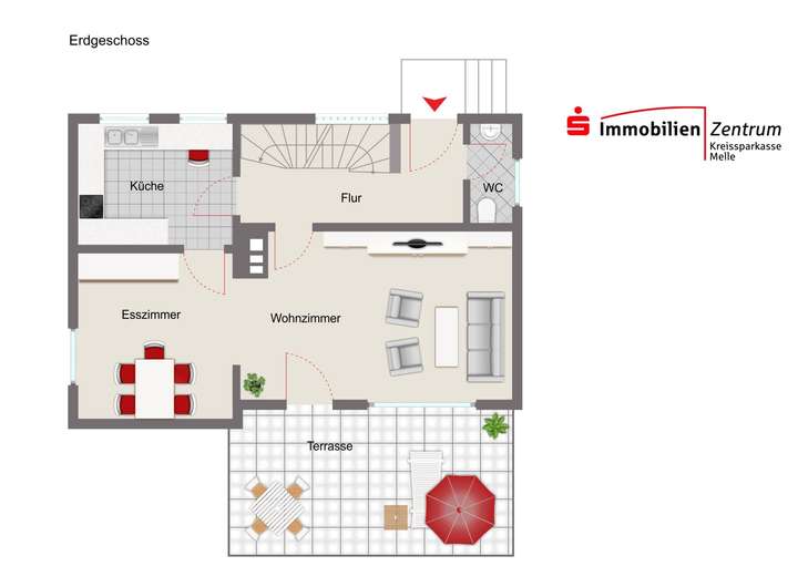 - Erdgeschoss: Wohn-/Esszimmer, Küche und Gäste-WC