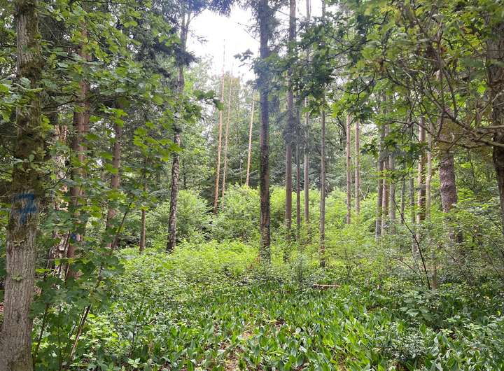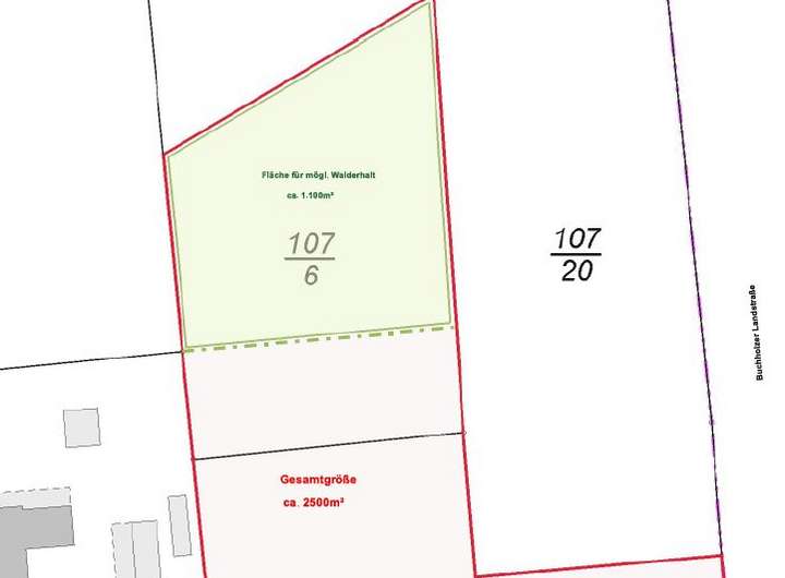 Auf der als Walderhalt gekennzeichneten Fläche ist keine Bebauung zulässig. Sie kann jedoch für die Berechnung der Grundstücks- und Geschossflächen herangezogen werden.