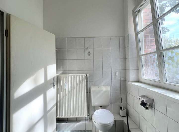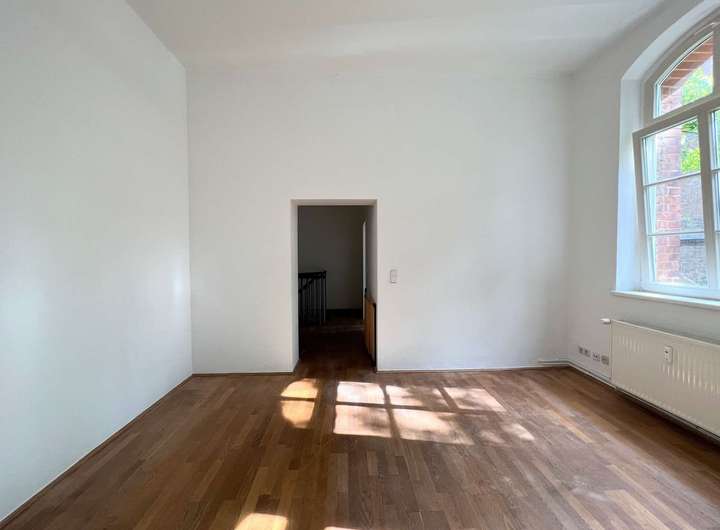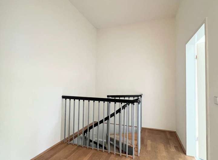 - im Obergeschoss: ein Wohnzimmer, eine separate Wohnküche inkl. Einbauküche (ohne Elektrogeräte) & großer Terrasse, ein Badezimmer mit Wanne & Fenster, eine kleine Fläche, die z.B als Arbeitsfläche genutzt werden kann