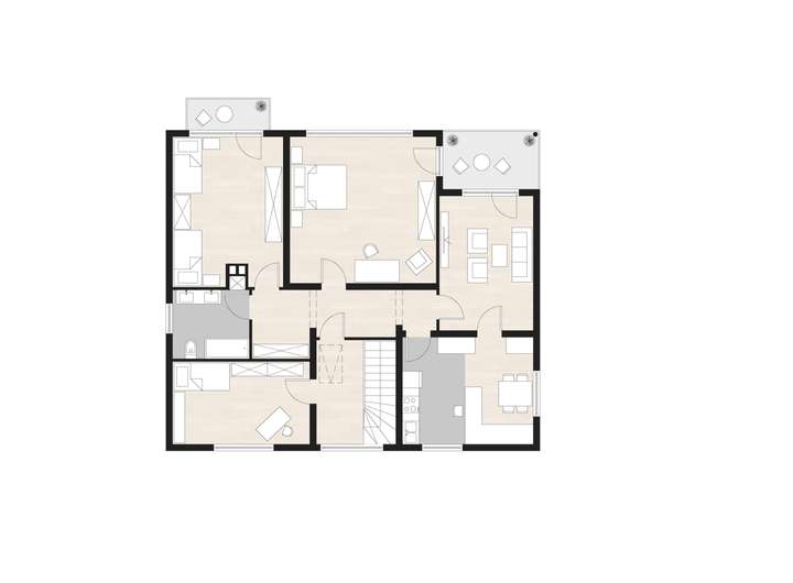 Vier der Zimmer bieten mit Größen zwischen ca. 14 m² und 24 m² viel Platz – und das besondere Highlight: von mehreren Räumen haben Sie Zugang auf zwei sonnige Balkone, die zusätzlichen Wohnkomfort und einen schönen Blick ins Grüne bieten.