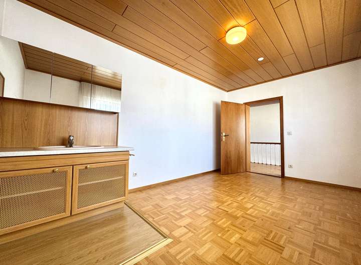 Über die Treppe im Flur erreichen Sie das Obergeschoss. Hier erwarten Sie vier weitere Zimmer sowie eine komplett ausgestattete Wohneinheit mit eigener Küche und Bad. Ob als eigenständige Wohnung, Büroetage oder luxuriöse Schlafräume – diese Etage eröffnet vielfältige Gestaltungsmöglichkeiten.