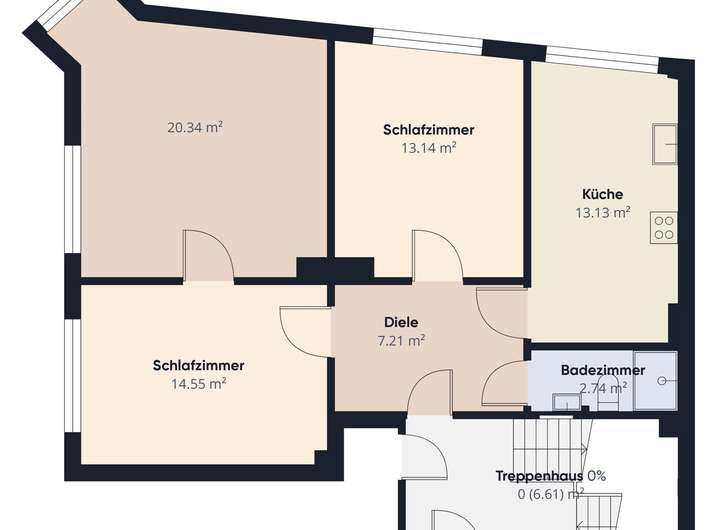 Die Wohnungen verteilen sich auf eine Einzimmerwohnung, vier Drei-Zimmer-Wohnungen und zwei Vier-Zimmer-Wohnungen. Ein guter Schnitt der einzelnen Wohneinheiten sowie die geräumigen Zimmer sprechen viele Mietinteressenten an und erleichtern die Vermietung.