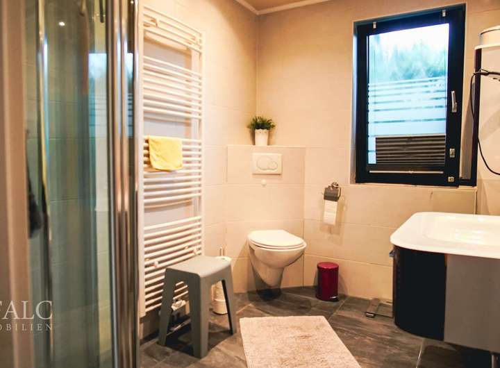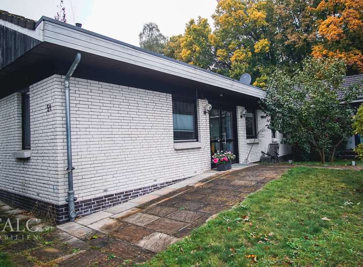 Eintreten und Wohlfühlen – dieses liebevoll sanierte Haus aus dem Jahr 1978 bietet auf 180m² Wohnfläche einen idealen Rückzugsort für alle, die gerne ebenerdig wohnen möchten. Beim Betreten des Hauses gelangen Sie in einen großzügigen Eingangsbereich, der Ihnen einen ersten Eindruck von der durchdachten Raumaufteilung vermittelt. Der offene Wohnbereich besticht durch große Fenster, die viel Tageslicht hereinlassen und eine einladende Atmosphäre schaffen. Hier finden Sie auch einen schönen Wintergarten, der das ganze Jahr über als gemütlicher Rückzugsort dient und einen herrlichen Blick auf das weitläufige Grundstück bietet. Der ebenerdige Zugang zum Garten lädt zu entspannenden Stunden im Freien ein und bietet Kindern viel Platz zum Spielen. Die Küche ist funktional gestaltet und bietet ausreichend Platz für einen Essbereich, sodass auch größere Mahlzeiten bequem zubereitet werden können. Vom Wohnbereich aus erreichen Sie ein barrierefreies Schlafzimmer, an das ein modernes Bad mit eigenem WC angrenzt. Von hier aus erreichen Sie ebenfalls eine eigene Terrasse zum Entspannen im Garten. Der Flur am Essbereich führt Sie zu den weiteren Zimmern des Hauses. Das Schlafzimmer ist großzügig geschnitten und bietet genügend Raum für einen großen Kleiderschrank. Ein weiteres Zimmer kann flexibel als Kinderzimmer, Büro oder Gästezimmer genutzt werden. Das Badezimmer ist behindertengerecht ausgestattet und bietet eine barrierefreie Dusche. Zusätzlichen Stauraum finden Sie im Abstellraum oder im Keller, der vielseitig genutzt werden kann. Vor dem Haus finden Sie eine Doppelgarage mit einem vorgebautem Doppel-Carport, was Ihnen und Ihren Gästen eine optimale Parkfläche bietet. Das Haus steht auf einem großzügigen Grundstück ohne Hintergrundbebauung, was Ihnen viel Privatsphäre garantiert. Mit einem Kaufpreis von 399.000 € bietet dieses Objekt eine hervorragende Gelegenheit, ein behagliches Zuhause in einer ruhigen Lage zu erwerben. Wir freuen uns auf Ihr Interesse an dieser schönen Immobilie, die Sie sicherlich ebenfalls begeistern wird.