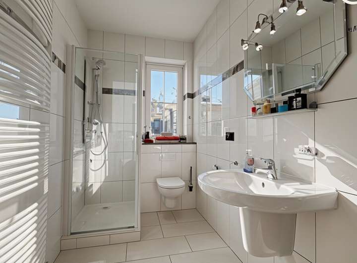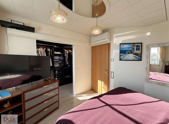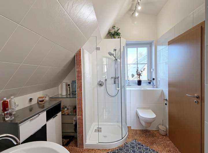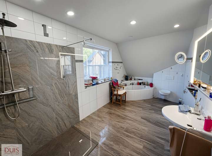 Auch im Inneren überzeugt das Haus mit Komfort auf allen Ebenen. Auf jeder Etage befindet sich ein Badezimmer – insgesamt drei, alle ausgestattet mit integrierten Radios. Die kontrollierte Wohnraumlüftung mit Wärmerückgewinnung und Erdwärmetauscher sorgt für ein angenehmes Raumklima, während Klimaanlagen (Baujahr 2022) auch an heißen Tagen für optimale Temperaturen sorgen.
