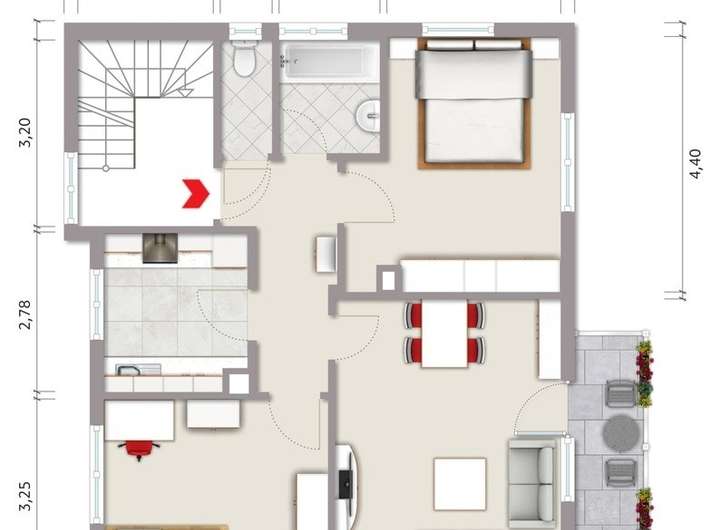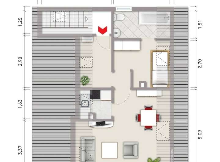 Das ausgebaute Dachgeschoss ist über eine Holztreppe zu erreichen und bietet Ihnen weitere individuelle Gestaltungs- und Nutzungsmöglichkeiten.