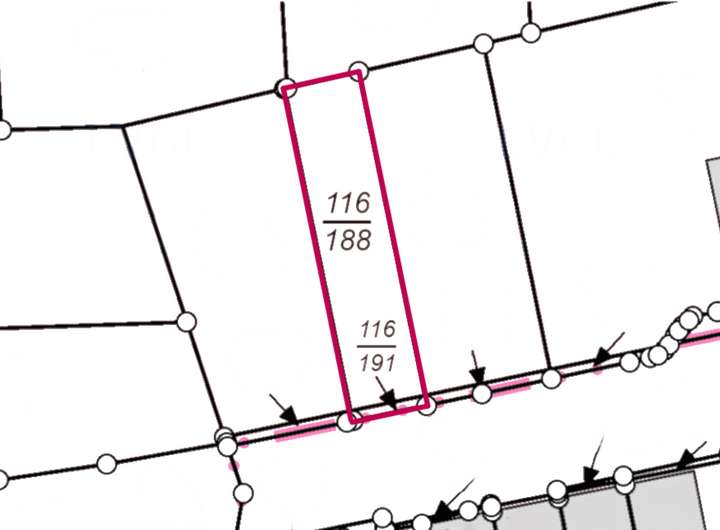 Die Nachbargrundstücke werden bebaut mit je einem Einfamilien-Reihenhaus.