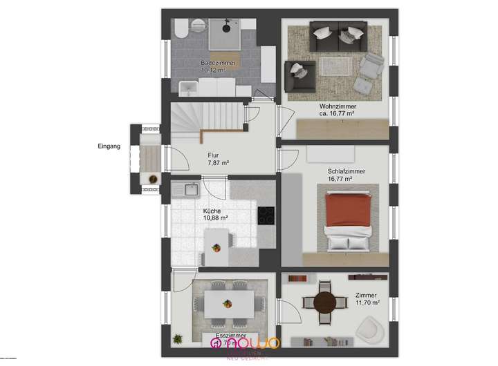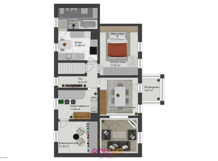 Bitte beachten Sie, dass es sich in den Grundrissen um Möblierungsvorschläge handelt. Die evtl. tatsächlich in der Immobilie befindliche Möblierung ist, sofern nicht anders erwähnt, nicht Bestandteil des Kaufangebotes.