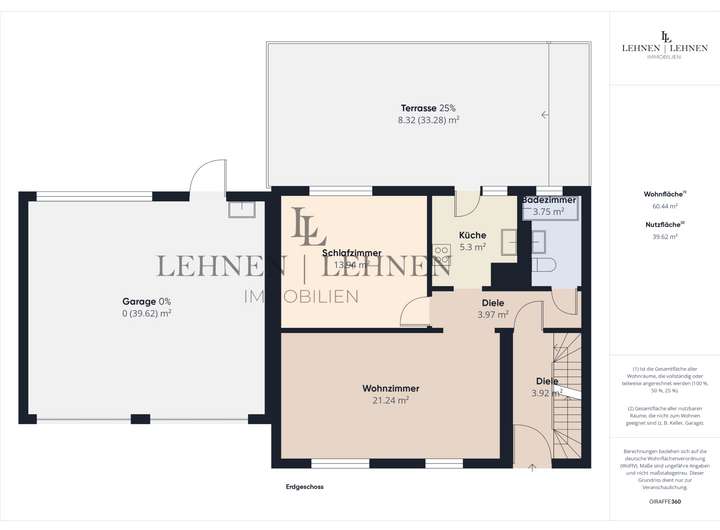 3,57 Im Falle der Vermittlung eines Kaufvertragsabschlusses erlaubt sich die Lehnen&Lehnen Immobilien GmbH & Co. KG, sowohl der Käufer-, wie auch der Verkäuferseite eine Provision i.H.v. jeweils 3,57% inkl. der gesetzlichen MwSt. des Kaufpreises in Rechnung zu stellen. Die Provision ist mit der Unterzeichnung des Kaufvertrages verdient und nach Rechnungsstellung innerhalb von 10 Tagen zahlbar. |