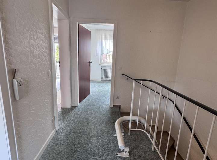 Das Obergeschoss verfügt über ein modernisiertes Bad (90er) sowie über das Elternschlafzimmer mit Zugang Balkon, einem großen Kinderzimmer sowie einem Büro, das auch als Ankleidezimmer oder weiteres kleines Kinderzimmer dienen kann.