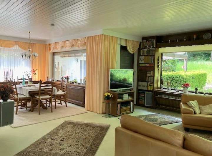 - wunderbares Grundstück. 1.168 m² am Waldrand - 121 m² Wohnfläche auf einer Ebene - 25 m² Einliegerwohnung mit Küche und Bad - Tageslichtbad - große, helle Schlafzimmer - wunderbarer Wohnbereich mit Panoramafenstern - Terrassen und Balkone - Gartenhaus - Doppelgarage - voll unterkellert, alle Räume beheizt - Ölzentralheizung aus 1989 - Energieausweis kann bei Besichtigung vorgelegt werden - Dach neu eingedeckt und gedämmt