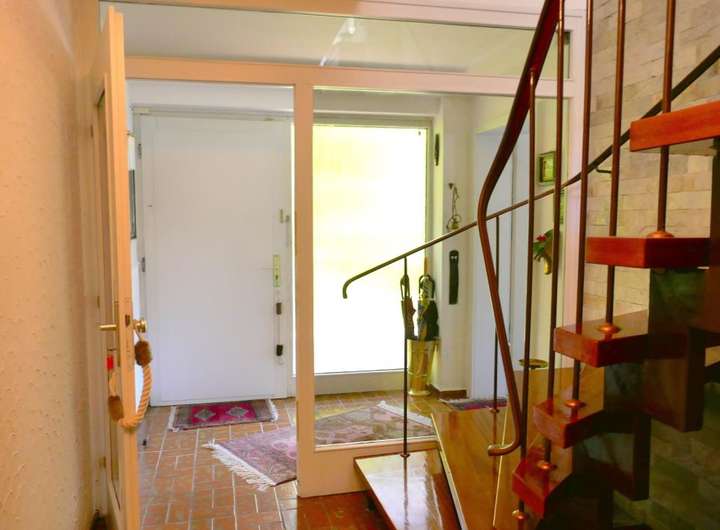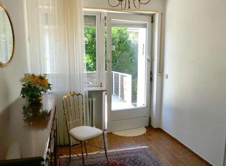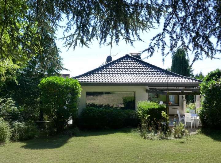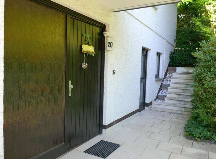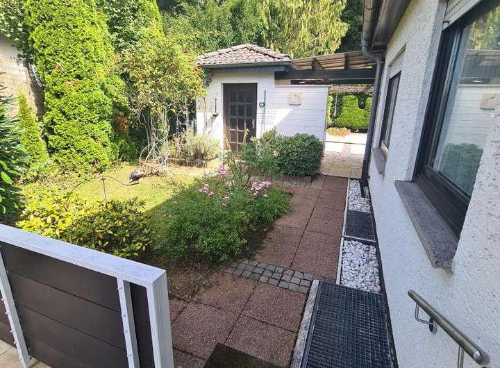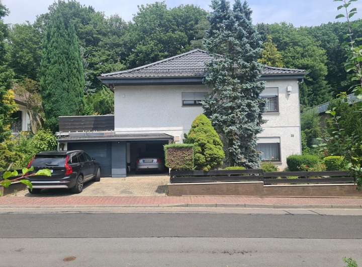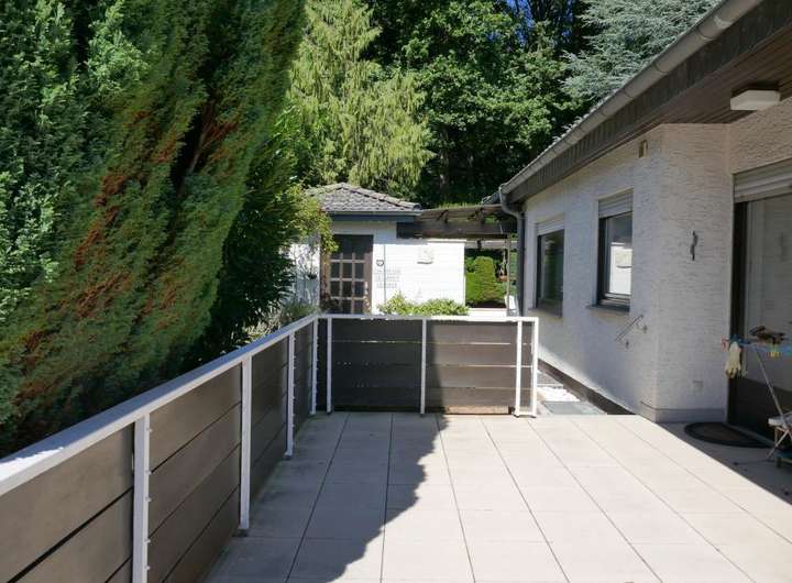 Was für eine tolle Raumkonzeption! Hier wohnen Sie sehr großzügig auf einer Ebene und haben noch Platz für die Einliegerwohnung oder ein kleines Büro! 2 Autos können bequem in der großen Garage geparkt werden, Besucher stellen sich davor! Ein kleiner Vorgarten, hübsch angelegt und schon sind Sie im Haus: Zur ruhigen Anliegerstraße hin befindet sich die Einliegerwohnung mit kleiner Küche und Duschbad. Im oberen Stockwerk sind zum wunderschönen Garten das großzügige Wohn- Esszimmer mit Panoramafenstern, Küche und Diele angeordnet. Der separate Schlaftrakt mit Tageslichtbad bietet mit zwei Schlafzimmern ruhiges Wohnen. Ruhe und Erholung findet man auf der uneinsehbaren Terrasse und dem umlaufenden Balkon auf diesem herrlichen Grundstück direkt am Wald. Das Haus ist voll unterkellert.