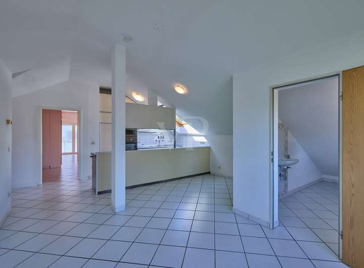 Die Wohnung im Dachgeschoss ist großzügig geschnitten mit einer Wohnfläche von ca. 98 m² und bietet ein helles Wohn-/ Schlafzimmer mit Balkon, eine geräumige Wohnküche mit Einbauküche und Abstellraum, ein Tageslichtbad mit Wanne und Dusche, ein lichtdurchflutetes Schlafzimmer und ein weiterer Balkon. Die Wohnung bietet sich ideal zur Vermietung an.