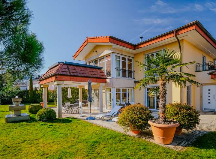 Das Angebot wird durch eine separate Einliegerwohnung und ein großzügiges Untergeschoss mit Weinkeller, Haustechnik und weiteren Räumen abgerundet. Eine imposante Einfahrt führt zu einem Vorplatz, welcher neben den zwei Garagenstellplätzen noch Platz für bis zu 10 Parkplätzen liefert.