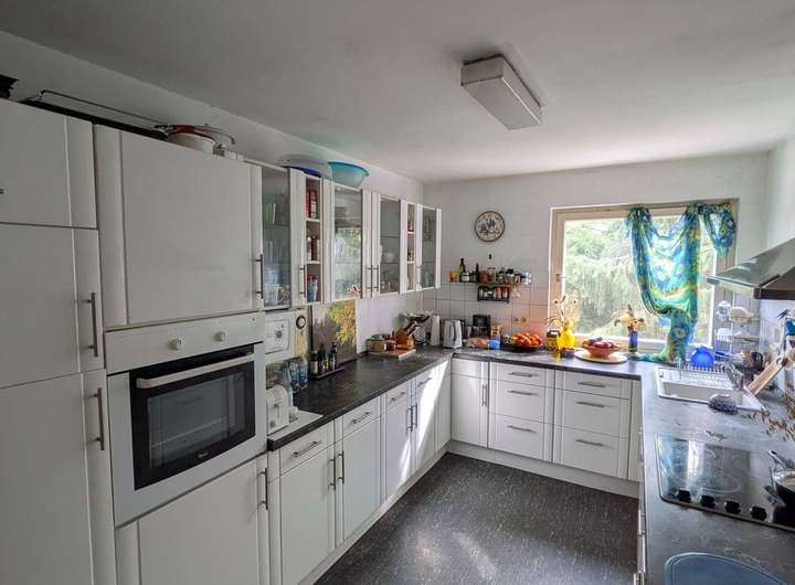 Das Haus verfügt über 6 Zimmer, 3 geräumige Schlafzimmer und 2 Bäder. Die Aufteilung über 2 Etagen ermöglicht eine praktische Trennung von Wohn- und Schlafbereichen. Das Untergeschoss könnte auch als Einliegerwohnung genutzt werden. Die letzte Modernisierung fand 1995 statt, daher bietet das Haus nun die Möglichkeit, es nach Ihren Wünschen zu renovieren und zu modernisieren.