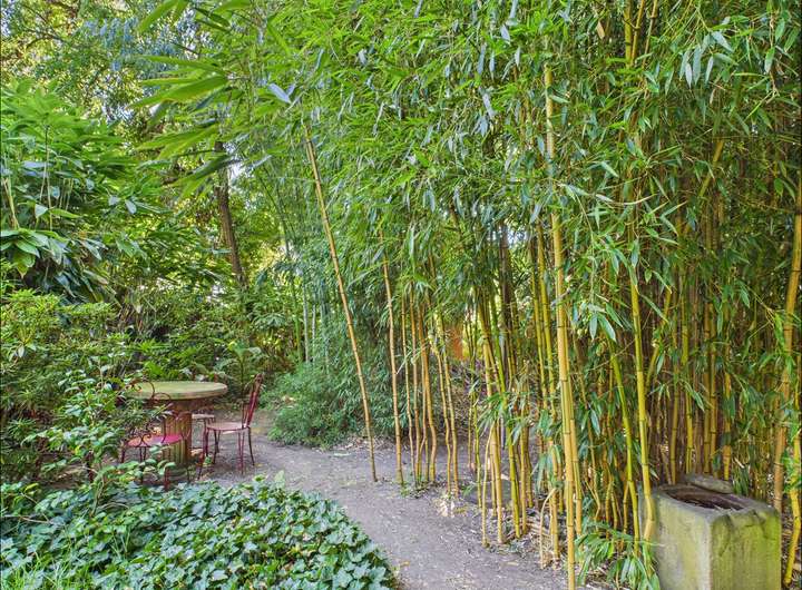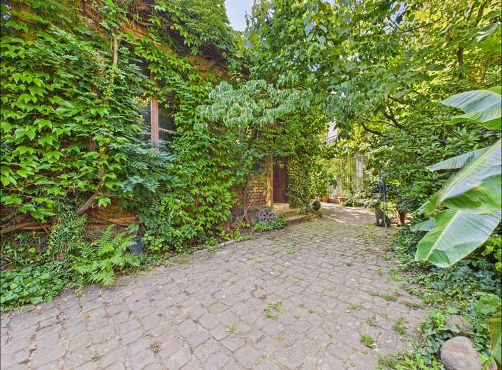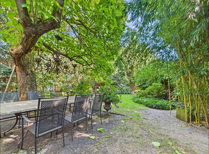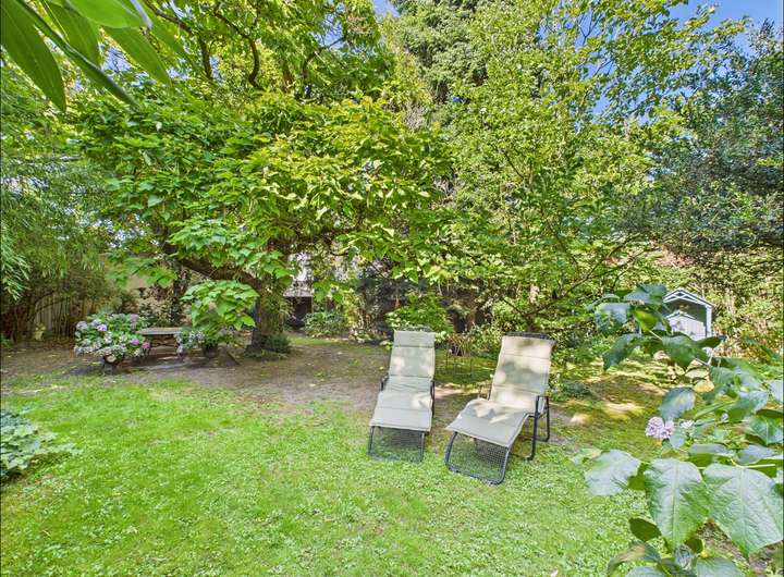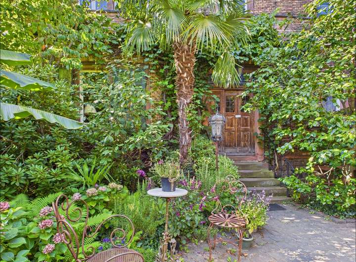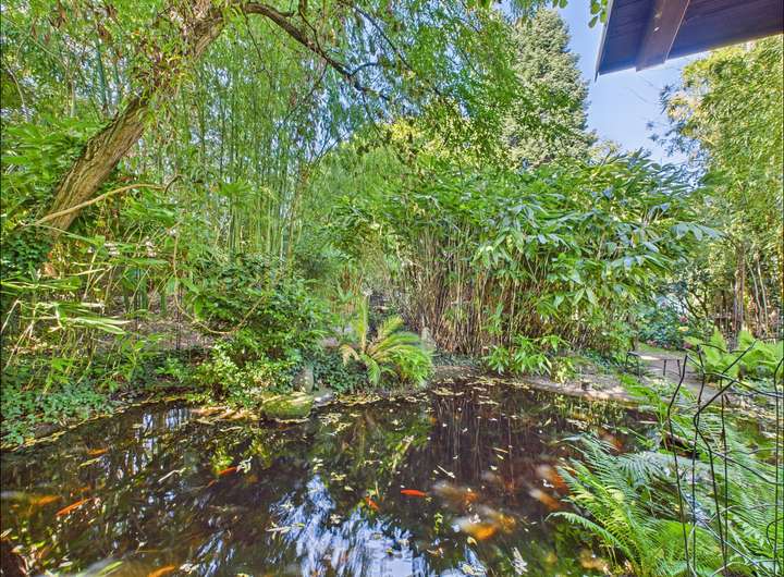 Das Grundstück umfasst zwei Flurstücke mit insgesamt 1215 m². Der Garten ist ein echtes Highlight. Palmen, Teich, Springbrunnen und liebevoll angelegte Wege schaffen eine private Oase mitten in der Stadt, ideal zum Entspannen und Genießen.