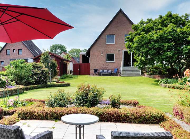 Im hinteren Teil des Grundstücks ist eine Bebauung denkbar. Der Wert dieser Immobilie liegt nicht nur im Haus, sondern im Zusammenspiel von Wohnraum und Außenraum.