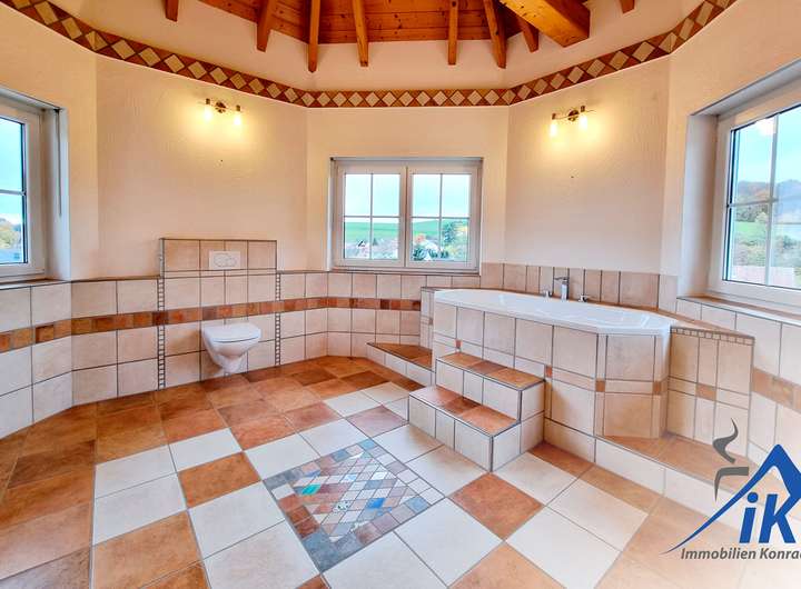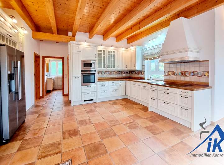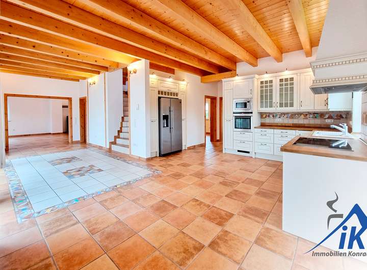 Hier bietet sich Ihnen die seltene Gelegenheit, in einer mediterranen Villa, mit vielen Holzelementen und einem offenen Grundriss zu leben. Trotz der Größe der Zimmer, versprüht das Haus eine angenehme Gemütlichkeit.
