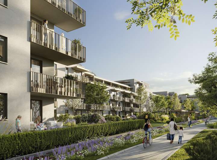 …angefangen bei den quartierseigenen Grüninseln bis hin zu den zahlreichen umliegenden Freiluftoasen, die zum Durchatmen und Aktivsein einladen.