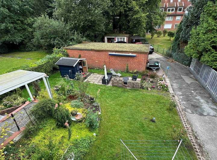 Die Gesamtwohnfläche beträgt ca. 420 m² und verteilt sich funktional auf die einzelnen Wohneinheiten. Das Grundstück umfasst großzügige 1.184 m² und bietet im rückwärtigen Bereich sechs Garagen, die den Mietern zur Verfügung stehen.