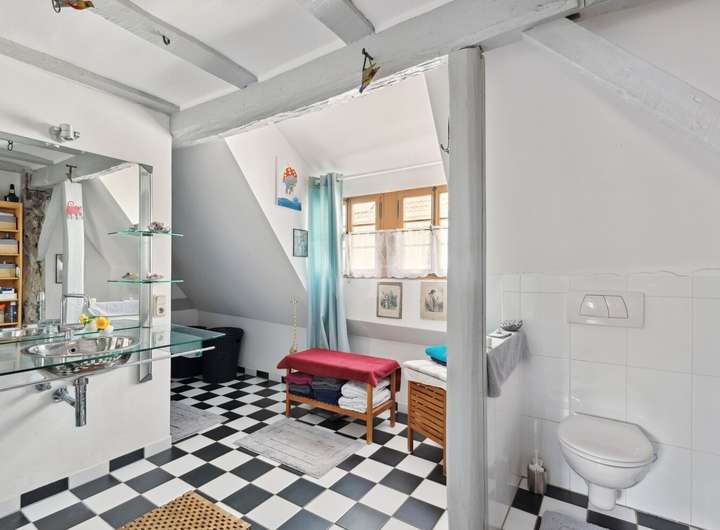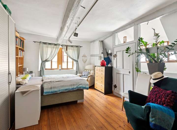 Das Haupthaus mit ca. 180 m² Wohnfläche begeistert durch seine Atmosphäre und die gelungene Verbindung von Tradition und Gegenwart. Das ehemalige Knechthaus wurde ab 2008 bis 2013 zu einem großzügigen Gästehaus mit ebenfalls rund 180 m² Wohnfläche um- und angebaut – ideal für Freunde, Gäste oder auch für eine separate Nutzung.