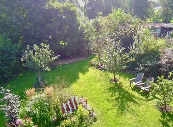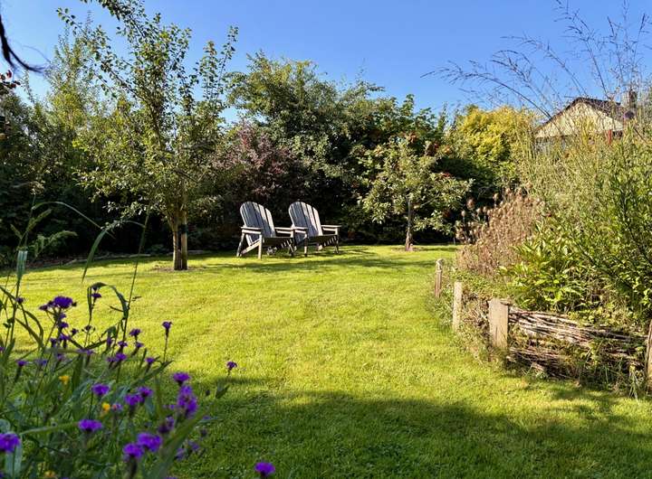 - Nicht einsehbarer Garten: Idyllische Privatsphäre mit Obstbäumen und Beerensträuchern.