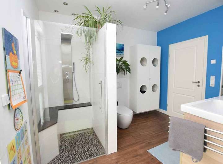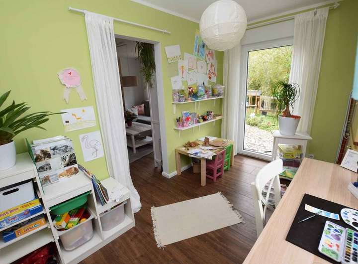 - Kamin - Einbauküche mit Elektrogeräten + Bartresen - Echtholztreppe - Fußbodenheizung im ganzen Haus - kontrollierte Be- und Entlüftungsanlage mit Wärmerückgewinnung - Wallbox - Wärmepumpe - Fenster 3-Fachverglasung - elektrische Rollläden - Doppelcarport - Abenteuerspielplatz - kleiner Teich - PV- Anlage 10 Kw mit Speicher 5 Kw - PV-Anlage ist gemietet ab 11/2021 für 20 Jahre - Gesamtmiete pro Monat beträgt 151,77€/brutto