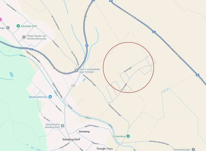 Zum Verkauf steht ein voll aufgeschlossenes Baugrundstück in sonniger Lage in Steinberg-Dörfl. Das Grundstück weist eine Gesamtfläche von 808m2 auf. Besonders attraktiv ist die südwestliche Ausrichtung, die nicht nur viele Sonnenstunden gewährt sondern auch den Anblick traumhafter Sonnenuntergänge ermöglicht. An der Gartenseite des Grundstücks genießen Sie einen herrlichen Fernblick. Die ruhige Umgebung inmitten gepflegter Einfamilienhäuser und naturnaher Landschaft macht dieses Grundstück zu einem idealen Standort für Ihr zukünftiges Zuhause.