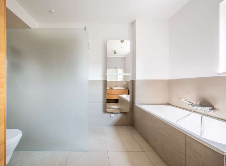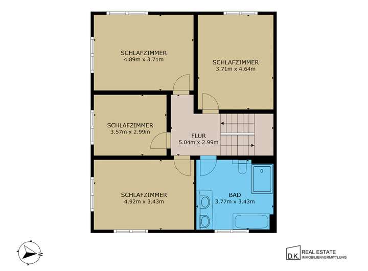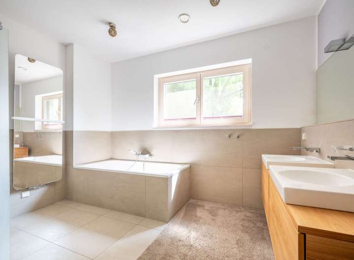 Im Obergeschoss befinden sich insgesamt vier großzügige Schlafzimmer, die vielfältige Nutzungsmöglichkeiten als Kinder-, Gäste- oder Arbeitszimmer bieten. Hochwertige Parkettdielen sorgen hier für ein warmes Wohnambiente. Ergänzt wird die Etage durch das geräumige Hauptbadezimmer mit moderner Ausstattung, bodengleicher Dusche und Badewanne.