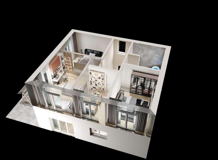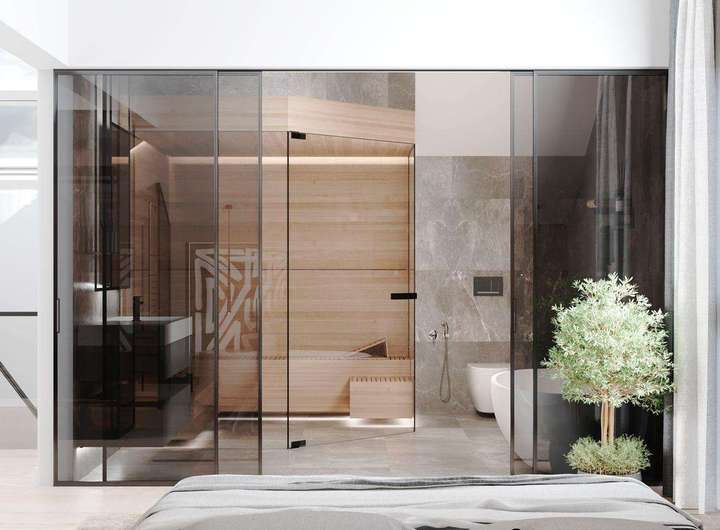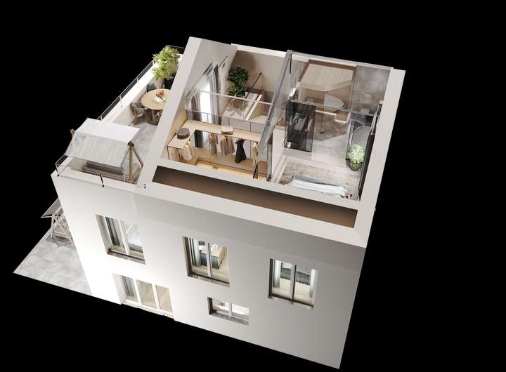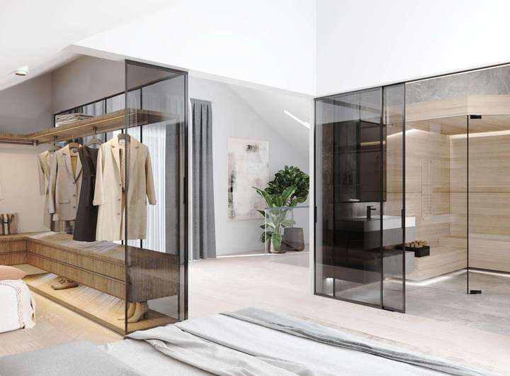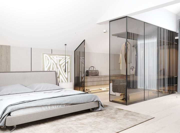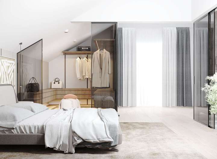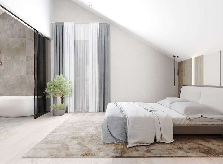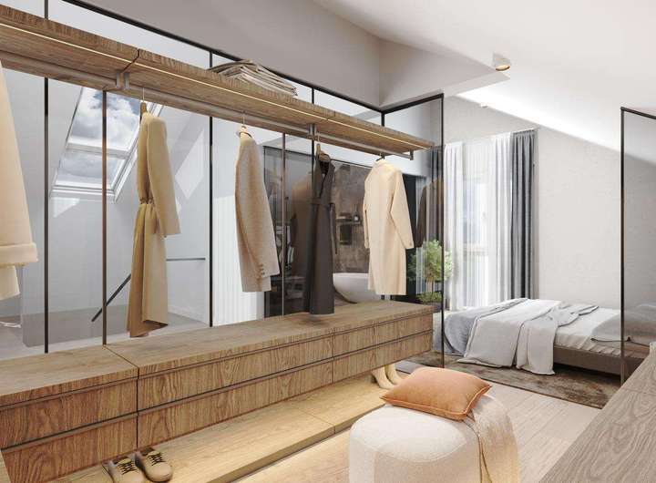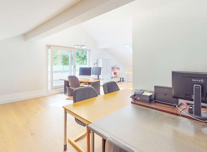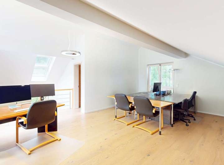 Das Dachgeschoss bietet außergewöhnliche Flexibilität und vielfältige Nutzungsmöglichkeiten: Aktuell befindet sich hier ein bereits eingerichteter Wellnessbereich mit Sauna und Dusche. Optional kann dieser Bereich um ein weiteres vollausgestattetes Badezimmer erweitert und so zu einem eigenständigen Bad ausgebaut werden. Alternativ lässt sich das Dachgeschoss auch als großzügiger Masterbedroom mit ensuite Bad gestalten – entsprechende Renderings liegen zur besseren Veranschaulichung vor und bieten inspirierende Einblicke in das mögliche Ausbaupotenzial. Darüber hinaus lässt sich das Dachgeschoss problemlos als separate Wohneinheit abtrennen und eignet sich ideal für Gäste, ein Au-pair oder die Nutzung als Homeoffice. Die angrenzende Dachterrasse rundet das Raumangebot perfekt ab und lädt zum Entspannen mit herrlichem Weitblick ein.