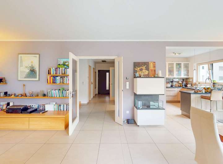 • Gehobene Ausstattung: Großformatige Fliesen, Parkettdielen, Fußbodenheizung, Kamin (Cultfire)