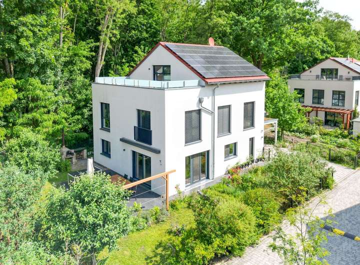 In einer der exklusivsten und naturnahen Lagen Potsdams präsentiert sich dieses neuwertige Einfamilienhaus auf einem etwa 622 m² großen Grundstück. Die unverbaubare Lage zwischen Wasser, Natur und dem nur wenige Minuten entfernten Zentrum Potsdams macht diese Immobilie zu einem wahren Juwel. In fußläufiger Entfernung erreichen Sie zudem die idyllische Halbinsel Hermannswerder – eine der schönsten und begehrtesten Wohnlagen der Region.