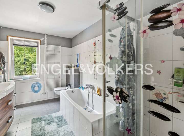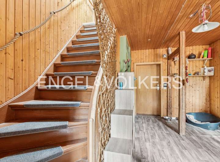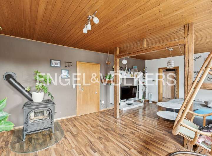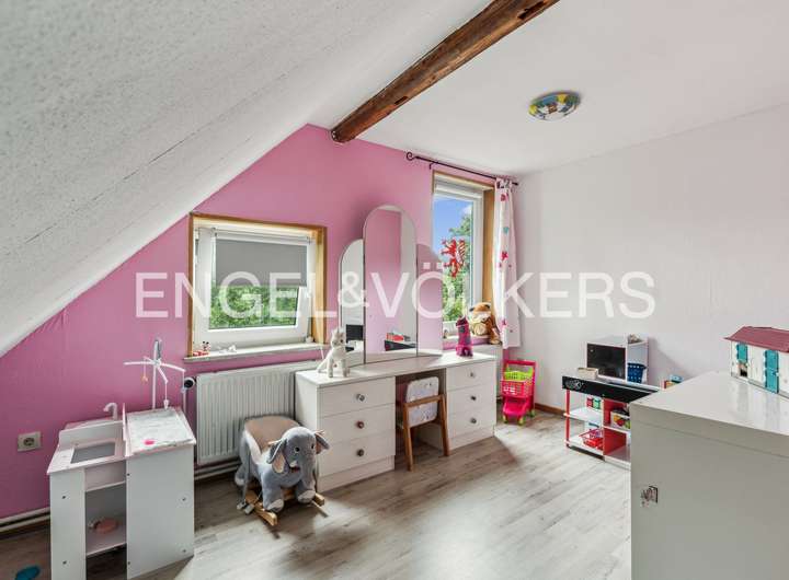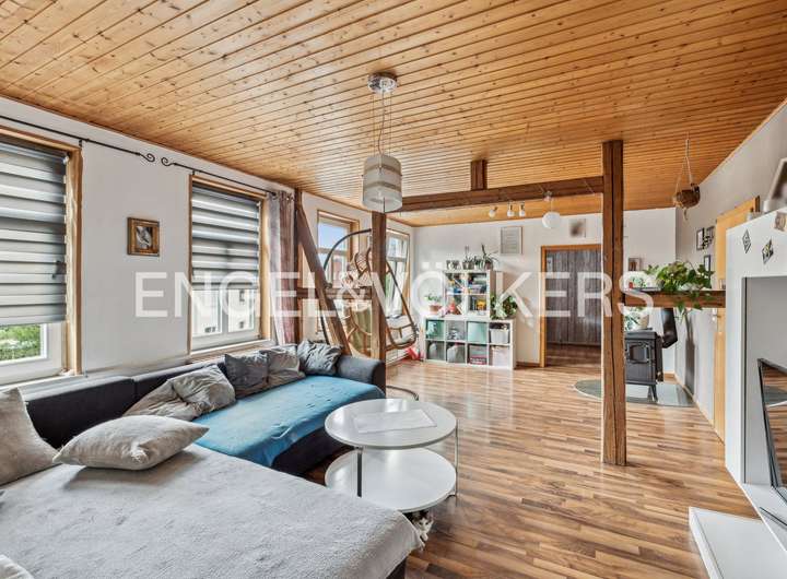Das Anwesen befindet sich auf einem Grundstück von rund 590 m² und bietet vielfältige Möglichkeiten für Familienleben, Hobbys oder auch eine teilweise berufliche Nutzung. Die Raumaufteilung ist flexibel und erlaubt unterschiedliche Wohnkonzepte – von der großen Familie über Wohngemeinschaften bis hin zu Homeoffice-Lösungen. Jede Etage verfügt über ein Hauptbadezimmer, ergänzt durch ein Gäste-WC im Erdgeschoss. Ein besonderes Highlight sind die sichtbaren Holzbalken, die den einzelnen