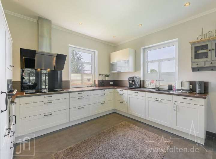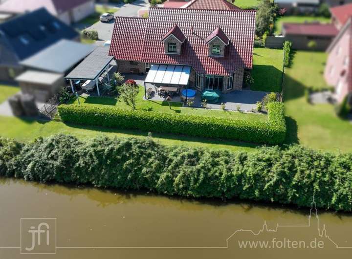 Genießen Sie modernes Wohnen ganz ohne Baustress: Im gemütlichen, direkt an der Ems gelegenen Fischerdorf Ditzum bieten wir Ihnen dieses TOP-gepflegte Einfamilienhaus aus dem Jahre 2015 zum Kauf an. Es wurde auf einem Wassergrundstück, direkt am Ditzum-Bunder Sieltief, und in Sackgassenlage errichtet. Die Aussenfassade besteht aus ortstypischem, aufwändigem Klinkermauerwerk mit Verzierungen. Die Kunststoff-Sprossenfenster sind in dunkelgrün/weiß gehalten und unterstreichen den ostfriesischen Charakter, ebenso die weißen Dachüberstände und die kreisrunden Fenster in der Giebelspitze.