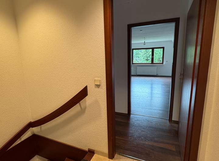 Es verfügt über 6 Schlafzimmer, 2 hochwertige Badezimmer, ein Gäste-WC und ein großes Wohnzimmer mit offener neuer Einbauküche und direktem Zugang zur sonnigen Terrasse. Der Gebäudezustand ist vollständig renoviert, die letzte Modernisierung fand im Jahr 2025 statt. Die Bauweise des Hauses ist ein Fertighaus der Firma Nordhaus und es besitzt einen ca. 110 m² großen Keller. Eine Gas-Heizung sorgt für angenehme Wärme im gesamten Haus. Zum Haus gehört ein großzügiger Gartenbereich, eine sehr große Garage sowie zwei Stellplätze.