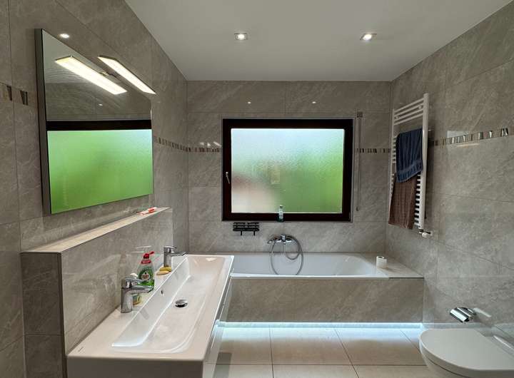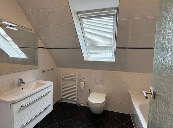 - 2 hochwertige Bäder mit Badewanne, Dusche und Tageslicht