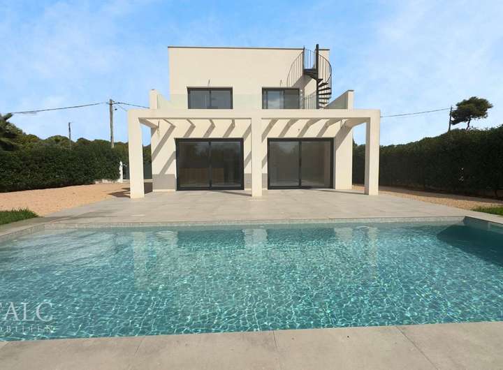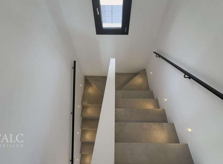 Die Villa ist mit hochwertigen Materialien ausgestattet, darunter elegante Fliesenböden und eine Fußbodenheizung, die für eine angenehme Wohlfühlatmosphäre sorgt. Eine Klimaanlage gewährleistet ganzjährig ein optimales Raumklima.