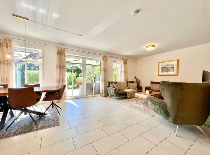 - helles Wohnen / Essen (Ofenanschluss vorhanden) mit Zugang auf die Terrasse und in den Garten