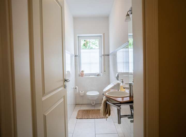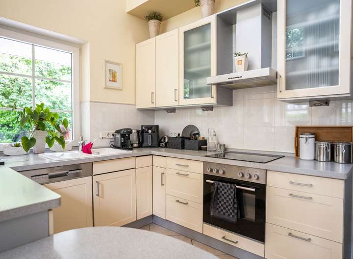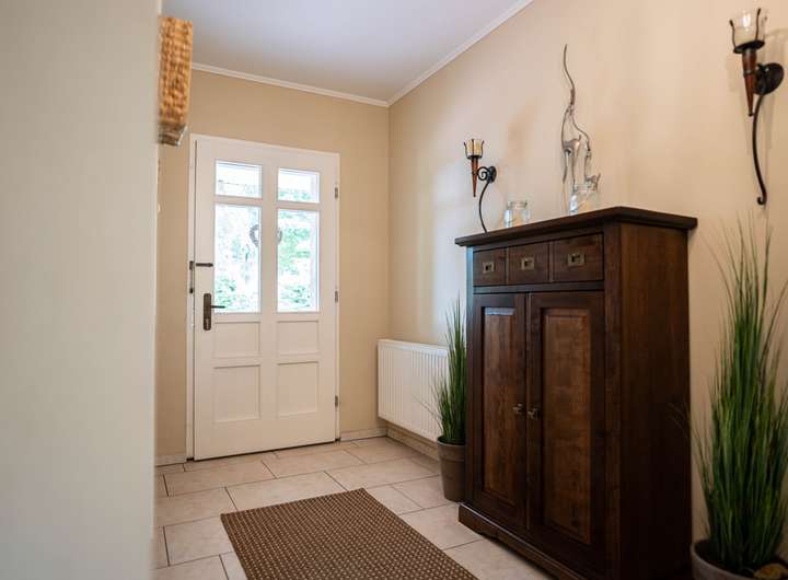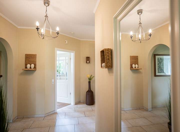 Zusätzlichen Raum bietet das Gästezimmer mit eigenem Duschbad und ein Büro sowie eine Gästetoilette. Praktisch sind auch der angrenzende Hauswirtschaftsraum mit direktem Zugang zu einem Badezimmer mit Dusche und die separate Speisekammer.