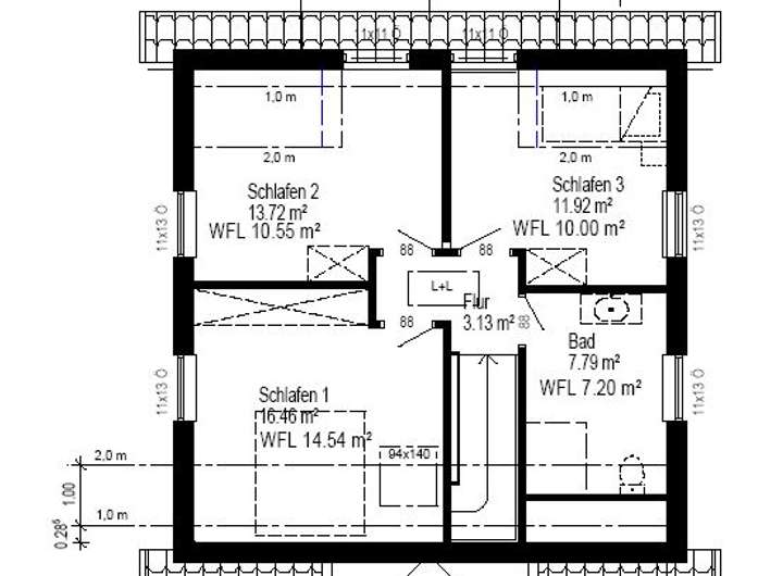 Erstellt werden auf einem fast 1.500m² großen, nach Süden orientierten Grundstück im vorderen Bereich zwei freistehende Einfamilienhäuser á 126m² Wohnfläche mit einem Grundstücksteil von 432m², und rückwärtig ein Einfamilienhaus mit 142m² Wohnfläche und einem Grundstücksteil von 594m²