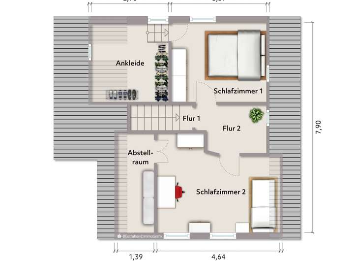 DG: 2 Schlafzimmer, Ankleide, Abstellraum, Flur
